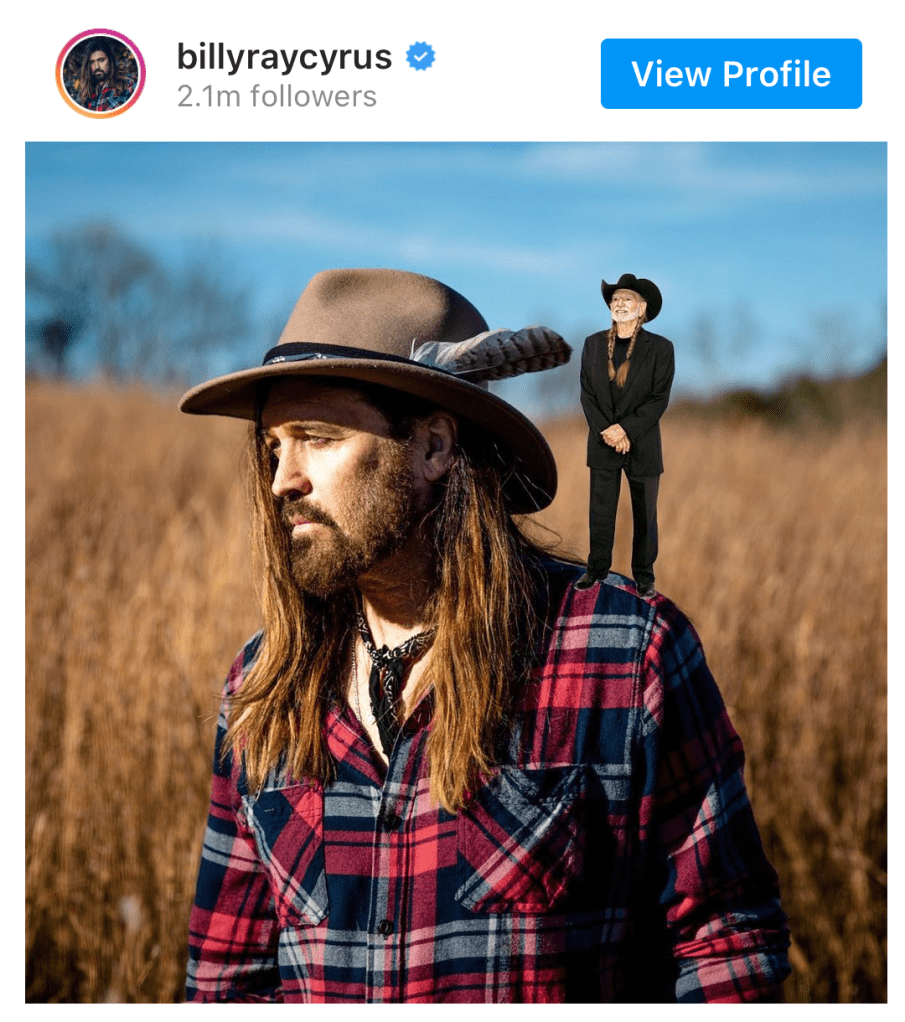 Though my favorite would have to be Billy Ray Cyrus’s Willie on a Billy. Now that one means something very different in the UK!